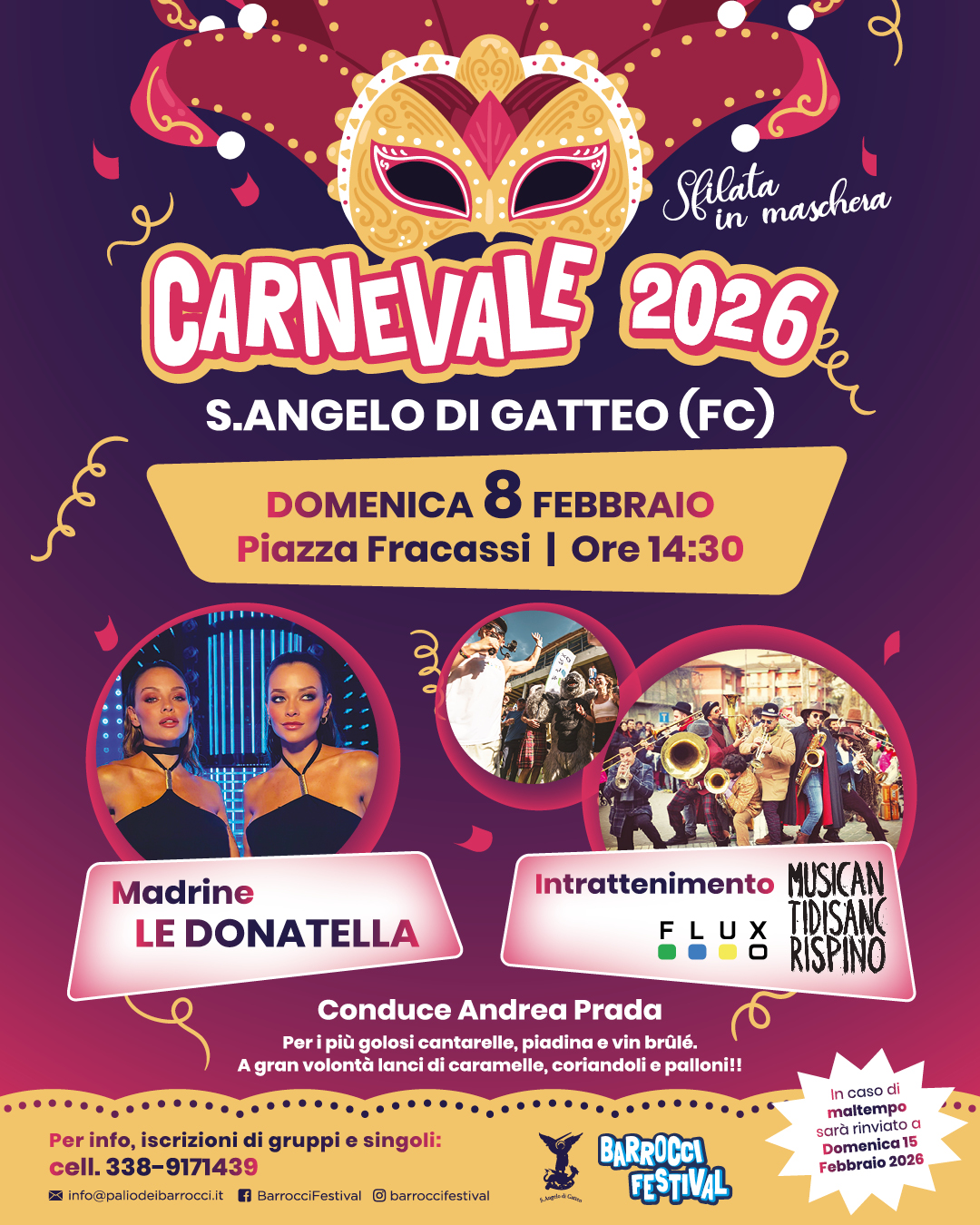 Biglietti per gruppi organizzati – Per i gruppi organizzati di minimo 25 persone è previsto il costo ridotto di € 15,00 → è necessaria la prenotazione a gruppi@carnevalecento.com