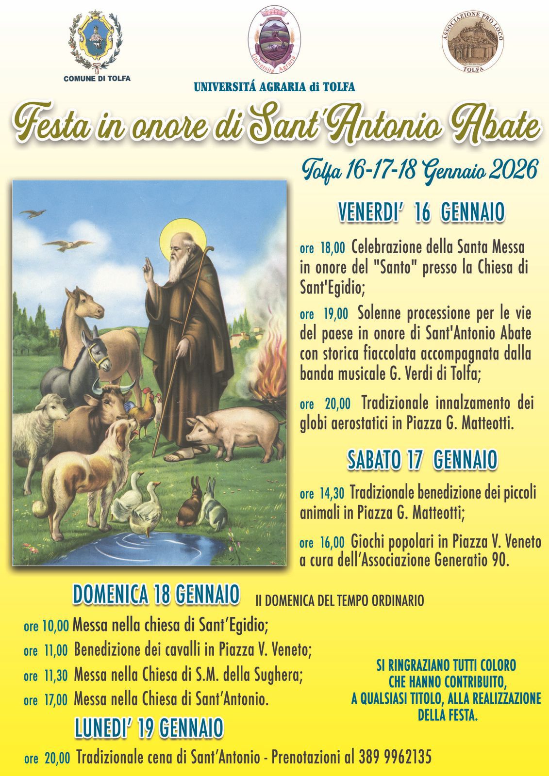 La Pro Loco ed il Comune di Tolfa vi aspettano dal 16 al 19 Gennaio 2026 per i festeggiamenti in onore di Sant'Antonio Abate.