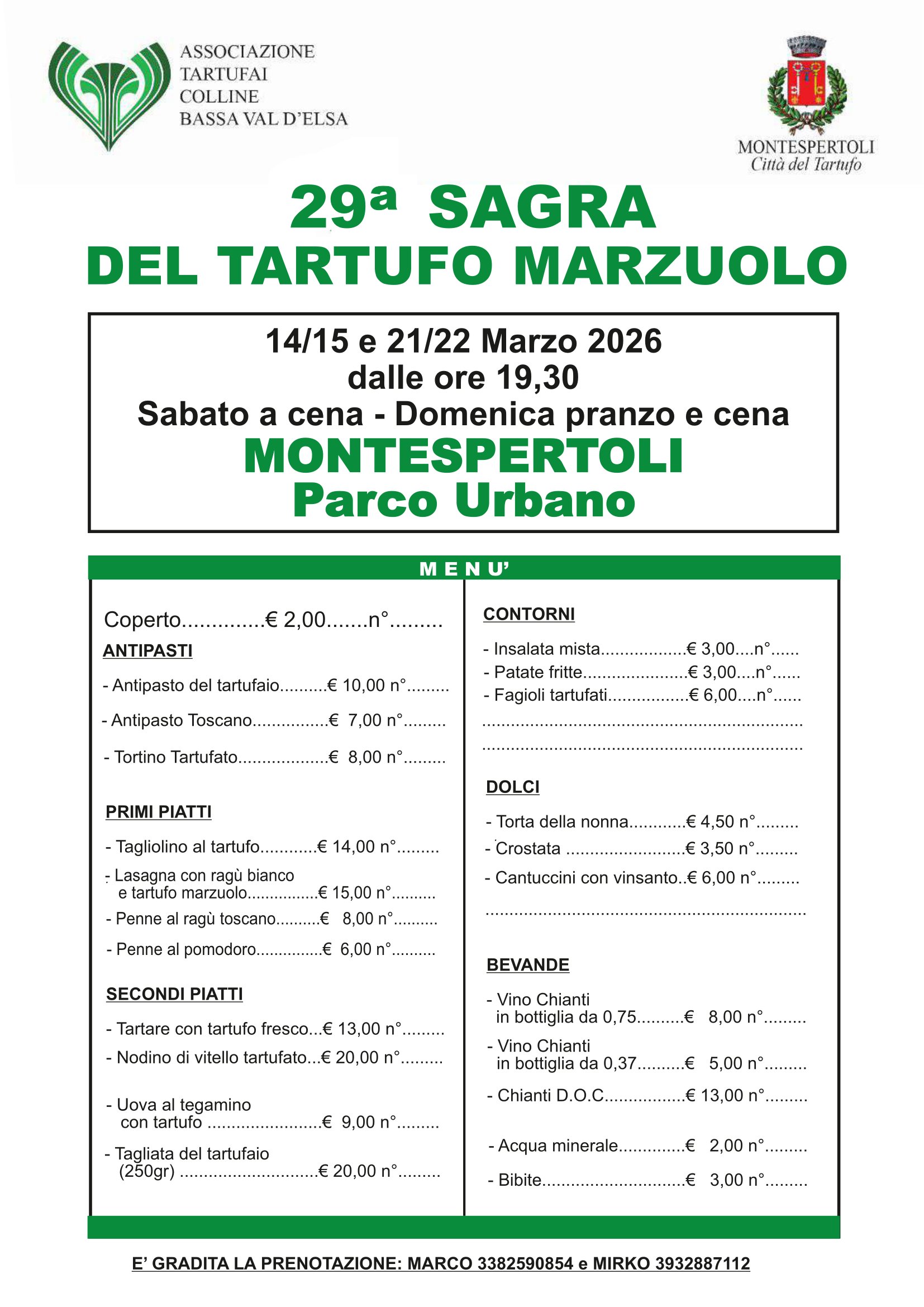 È gradita la prenotazione ---> Mirko 393.2887112 oppure Marco 338.2590854
