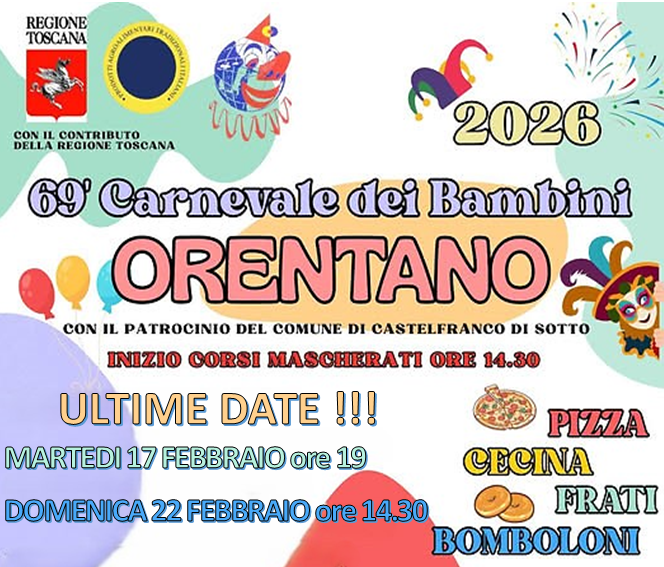 Ogni anno a Orentano, frazione di Castelfranco di Sotto, i protagonisti del Carnevale sono i bambini che sfilano per le vie del paese a partire dalle ore 14:30 con i Corsi mascherati, animando l'atmosfera con allegre risate e colorati costumi.