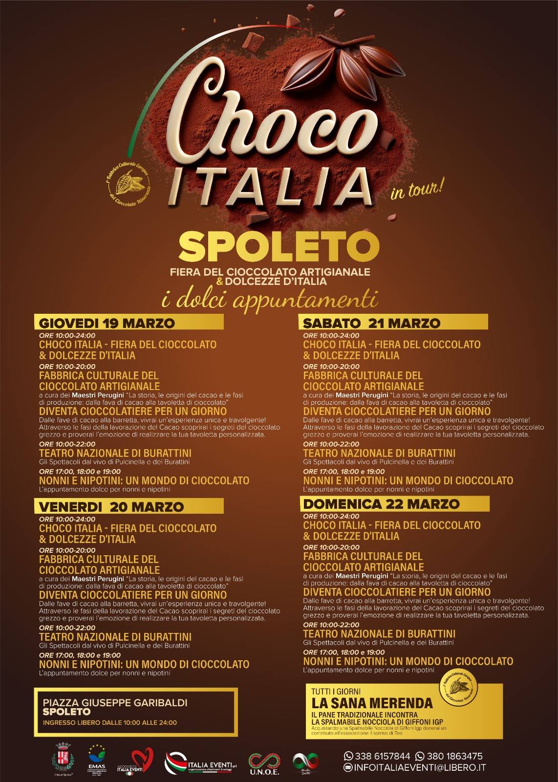 La Fiera del Cioccolato Artigianale e Dolcezze d’Italia è organizzata dall’Associazione Italia Eventi in collaborazione con l’UNOE Unione Nazionale Organizzatori di Eventi, con il patrocinio del Comune di Spoleto.